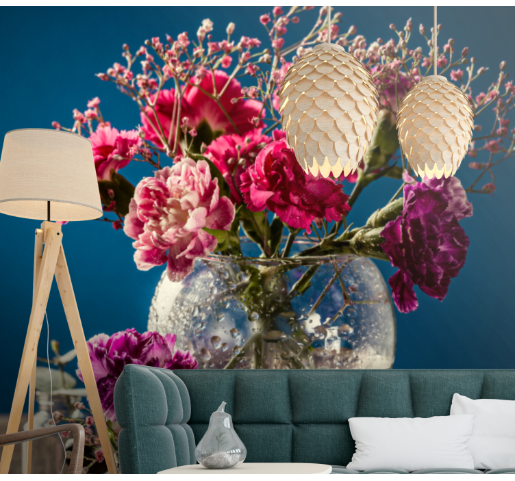 Vstupte do světa elegance s naší Fototapetou květiny Živá květinová kompozice, která přináší nádherný design do vašeho interiéru. Tento úchvatný vzor zobrazuje krásu květin, včetně jemných karafiátů, umístěných ve stylové váze. Sklenka s kapénkami dodává celému designu živost a svěžest, zatímco flóra okolo vytváří harmonickou kompozici, která oživí každou místnost. Pro všechny milovníky přírody je tento jedinečný kousek ideálním způsobem, jak přenést kousek zahrady přímo do vašeho domova!