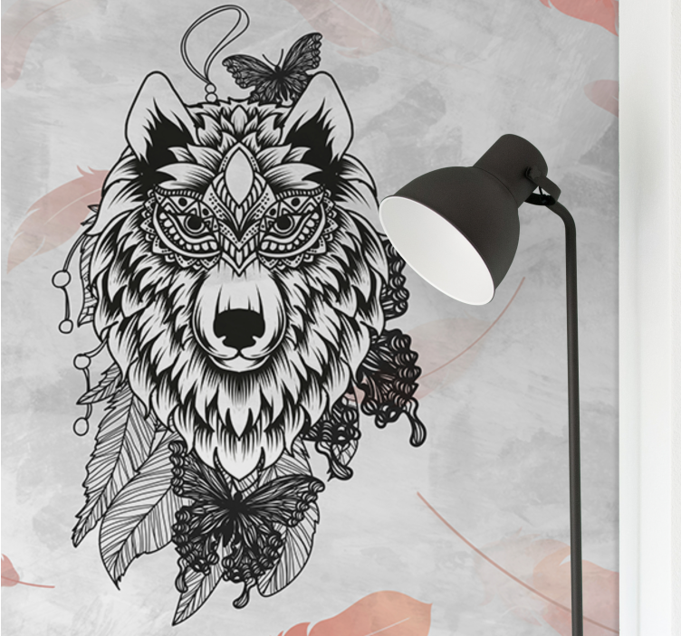 Objevte jedinečný design naší Fototapeta teenager pokoj umění dekorace vlka, která přináší do vašeho domova jedinečný nádech divoké přírody. Tento grafický prvek obsahuje maskovaného vlka obklopeného listy a motýly, což vytváří harmonickou atmosféru plnou přírodní krásy. Je to ideální volba pro všechny, kteří chtějí svůj interiér obohatit o stylové a inspirativní umělecké dílo!
