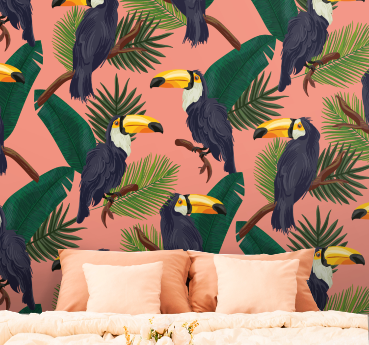 Fototapeta zvířata s designem tropických tukánů přináší živou a fascinující atmosféru do každého interiéru. Tento úchvatný design, který zobrazuje tukany, tukan, a bohaté olistění s tropickými motivy, vás vtáhne do světa barev a přírody. Ilustrace zachycují vzor ptactva a listů, což vytváří harmonickou a příjemnou atmosféru v místnosti, která je ideální pro relaxaci a inspiraci.