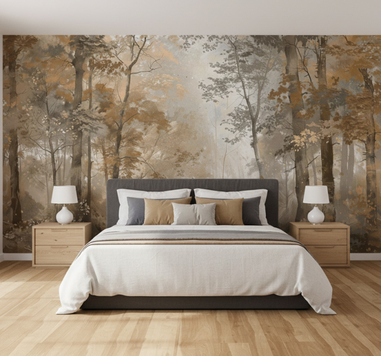 Reference: F11931Lesní fototapeta jantarový podzimní háj