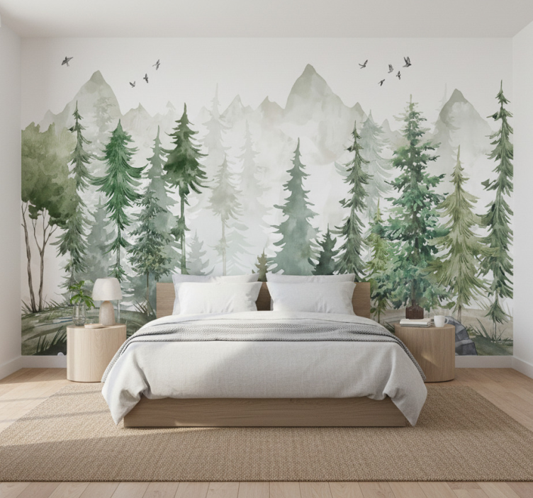 Lesní fototapeta skandinávská borovice minimalismus