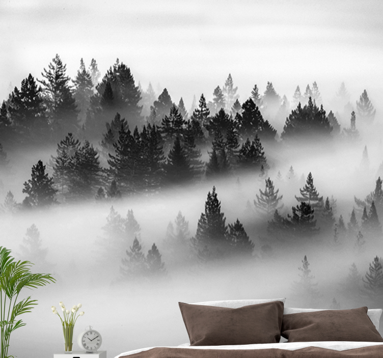 Lesní fototapeta tajemné věčně zelené lesy vás přenese do fascinujícího světa přírody, kde se setkávají majestátní stromy a tajemná mlha. Tento graficky impozantní design v odstínech šedé podtrhuje kouzlo lesa, které dodává prostoru jedinečný a uklidňující nádech. Příroda se zde projevuje v plné kráse, což vám umožní cítit se jako v náruči matky Země.