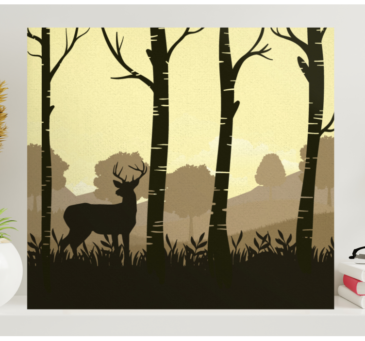 Reference: Q1281Krásný plátěný domácí dekor jelena se stromy v zemitých barvách