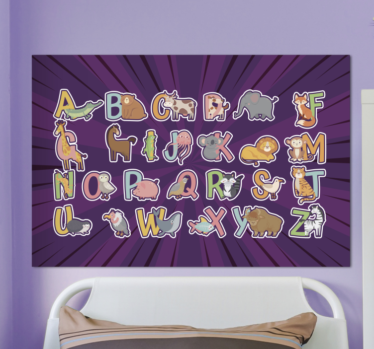 Velmi krásné vzdělávací obraz se zvířaty ilustrované barevnými písmeny na fialovém pozadí motivu. Dokonalé obraz pro dětskou ložnici, hernu, učebnu atd., snadno se udržuje a kvalita je špičková. Potištěno kvalitním povrchem a nevybledne ani neodráží světlo. Je snadné ho pověsit, kupte si ho hned, abyste jej obdrželi za pár dní.