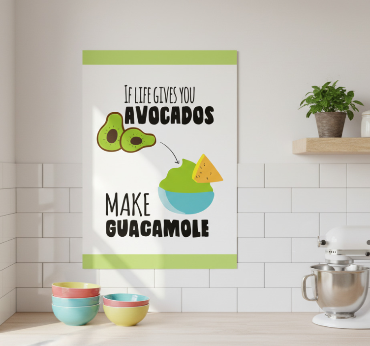 Kuchyňský plakát vtipné avokádové heslo je skvělým způsobem, jak oživit atmosféru vaší kuchyně! Tento dekorativní výrobek nejenže vypadá skvěle, ale také dodává vašemu prostoru osobitost a styl. Je to ideální volba pro všechny, kdo chtějí zpříjemnit vaření a přidat do svého domova nádech originality. Navíc, díky jeho kvalitnímu provedení a jasným barvám, se stane radostí pro oko každého, kdo do kuchyně vstoupí!