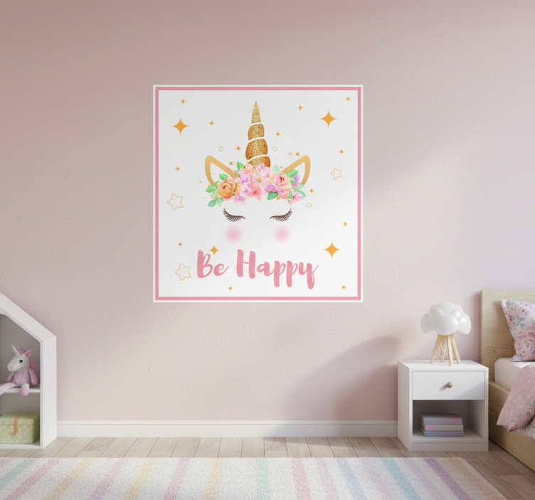 Plakát do dětské ložnice s jednorožcem buď šťastný