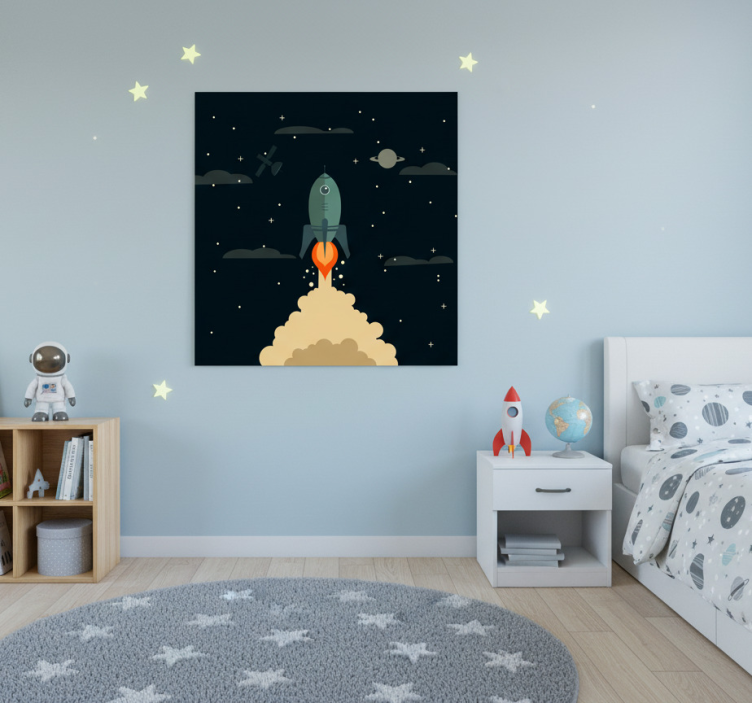 Plakát do dětské ložnice s raketou do vesmíru