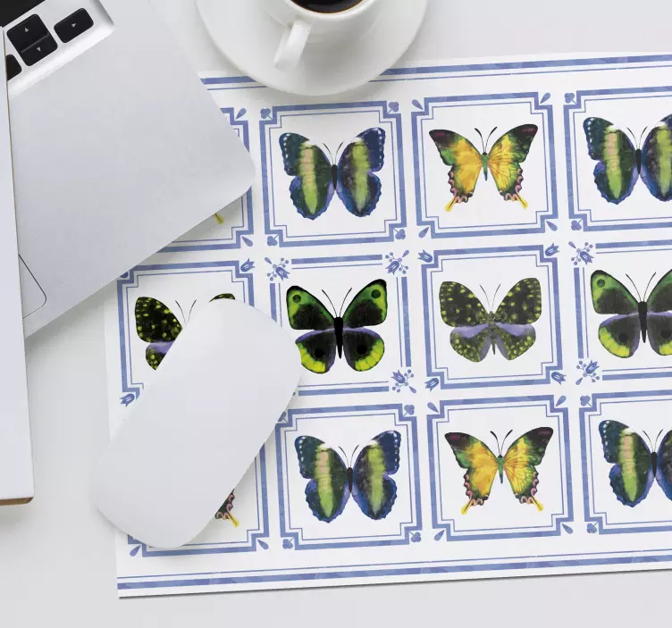 Podložka pod myš s barevnými motýly je skvělým doplňkem pro váš pracovní prostor. Její design obsahuje krásné různé barvy motýlů vytištěné na dlaždici se vzorovaným pozadím, které dodávají produktu eleganci a originalitu.