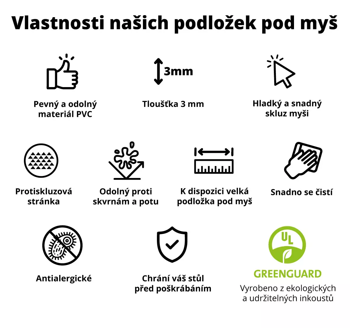 PROTIPROHLÍŽECÍ PODLOŽKA - Perfektní přilnavost podložky pod myš ke stolu