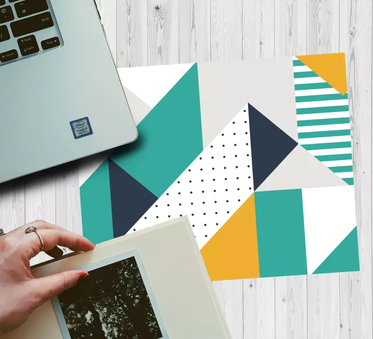 Reference: N3878Tento design obsahuje živé uspořádání geometrických tvarů a vzorů. Kompozice zahrnuje trojúhelníky a pruhy v různých barvách, což vytváří vizuálně poutavý efekt, který obohacuje jakékoli pracovní prostředí. Odvážný a dynamický, tento vzor přitahuje pozornost a dodává současný nádech.