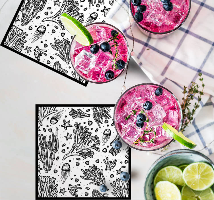 Objevte jedinečný design Efekt textury podtácků podvodní životní prvky, který přináší do vašeho domova živou atmosféru mořského světa. S motivy jako jsou korál, mořská řasa, a medúza se každý podtácek stává malým uměleckým dílem. Vzory inspirované mořským životem, hvězdami a oceánem v kombinaci s elegantními černými a bílými tóny dodávají vašemu stolu styl a originalitu!