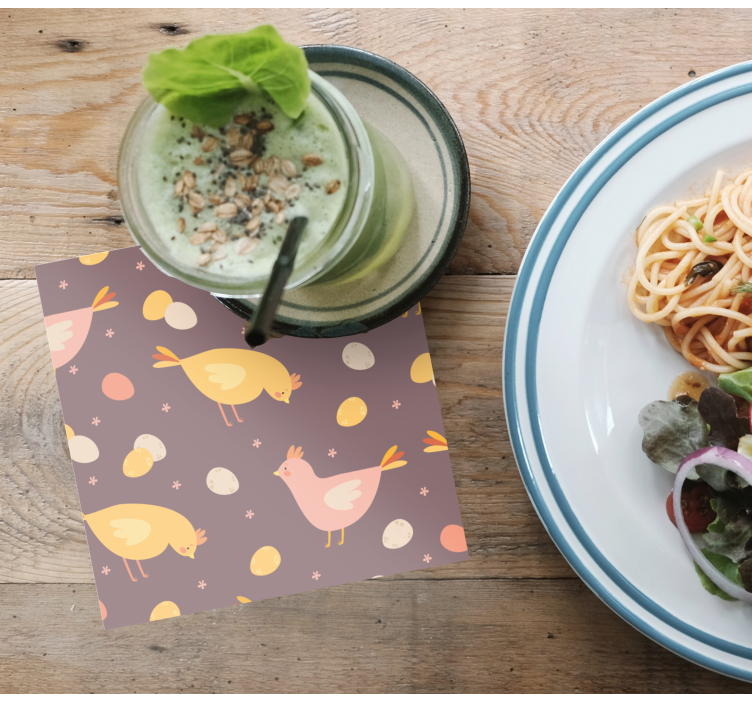 Svatební podtácek s vzorem okouzlujících ptáků je jedinečný kousek, který přináší do vašeho stolu hravý a náladový design. Tento roztomilý design zahrnuje motivy kuřat a ptactva, které jsou ztvárněny v jemných pastelových barvách, dodávajících výrobku svěží a veselý vzhled. Vejce a zvíře v kombinaci s prací zemědělce vytváří unikátní vzor, který okouzlí každou svatební tabuli a přidá jí na originalitě.