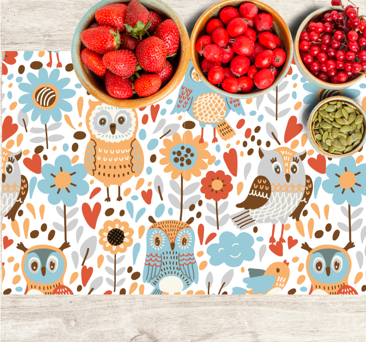 Získejte Barevné sovy s květinovým vzorem dětskou podložku na stůl hned teď a přidejte do své jídelny barvu a dekoraci!