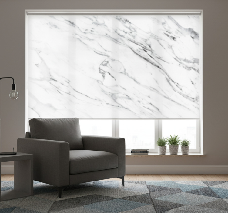 Bílá roleta s mramorovým efektem v industriálním stylu