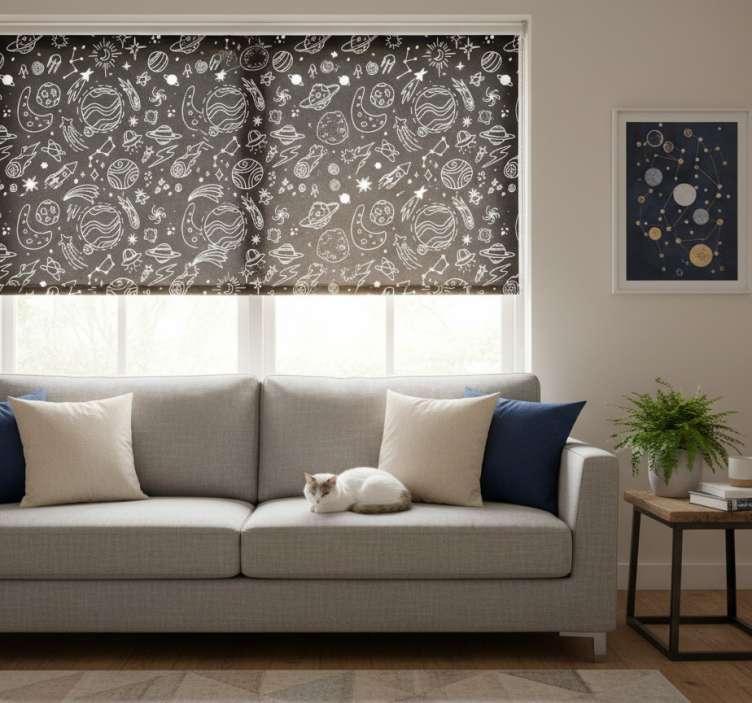 Moderní roleta s kosmickými ilustracemi v černobílé