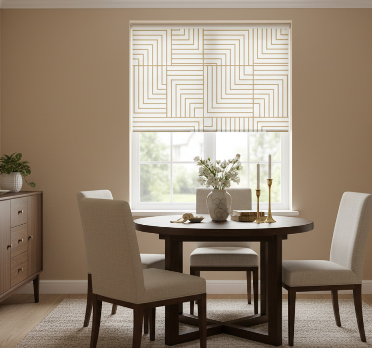 Roleta do jídelny bílá a zlatá geometrie Roleta do jídelny je ideálním řešením pro ty, kteří chtějí zkombinovat funkčnost s designem. Tento výrobek vám nejen pomůže regulovat přístup světla, ale také poskytne potřebné soukromí. Můžete si užívat slunečních paprsků, aniž byste se museli obávat nežádoucích pohledů zvenčí. Je to skvělý způsob, jak zlepšit výzdobu vaší jídelny a zároveň zajistit komfort pro vás a vaše hosty!