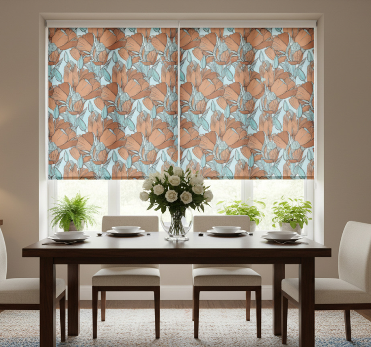 Roleta do jídelny umělecký modrý design hnědých tulipánů Roleta do jídelny je výjimečným doplňkem každého interiéru. Vytváří nejen esteticky příjemné prostředí, ale také zvyšuje funkčnost vašeho domova. Je to ideální volba pro ty, kteří hledají kombinaci stylu a praktičnosti. Tato roleta nejenže oživí vaši jídelnu, ale také vám pomůže regulovat světlo a teplo, čímž zajistí pohodlí pro vás a vaše hosty. Nechte se inspirovat jejím nádherným designem a přidejte do svého domova špetku umění!