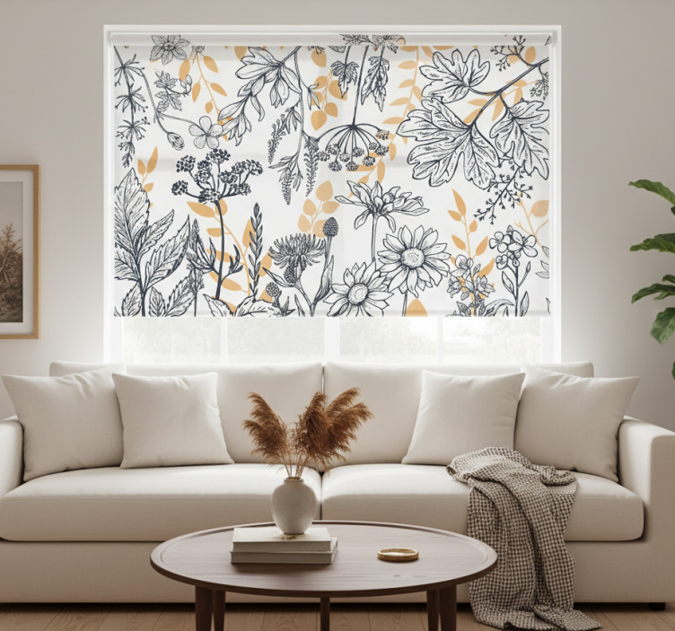 Roleta do obývacího pokoje s květinovým glamour zlatem