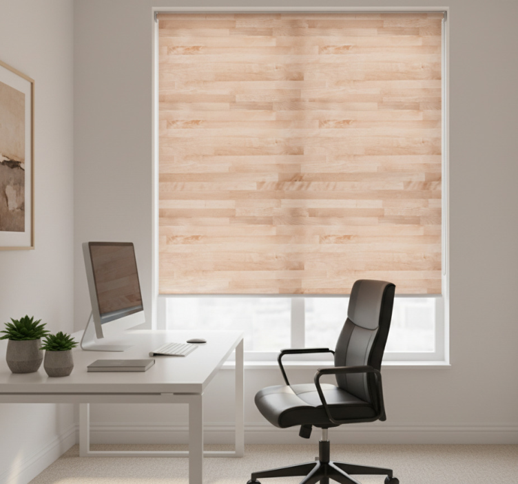 Instalace rolety domácí kanceláře elegantní hnědá dřevěná deska Roleta domácí kancelář je snadná a rychlá. Stačí ji připevnit na rám okna pomocí dodaného systému montáže na dva kliknutí a máte hotovo! Užijte si pohodlí a styl během několika minut.