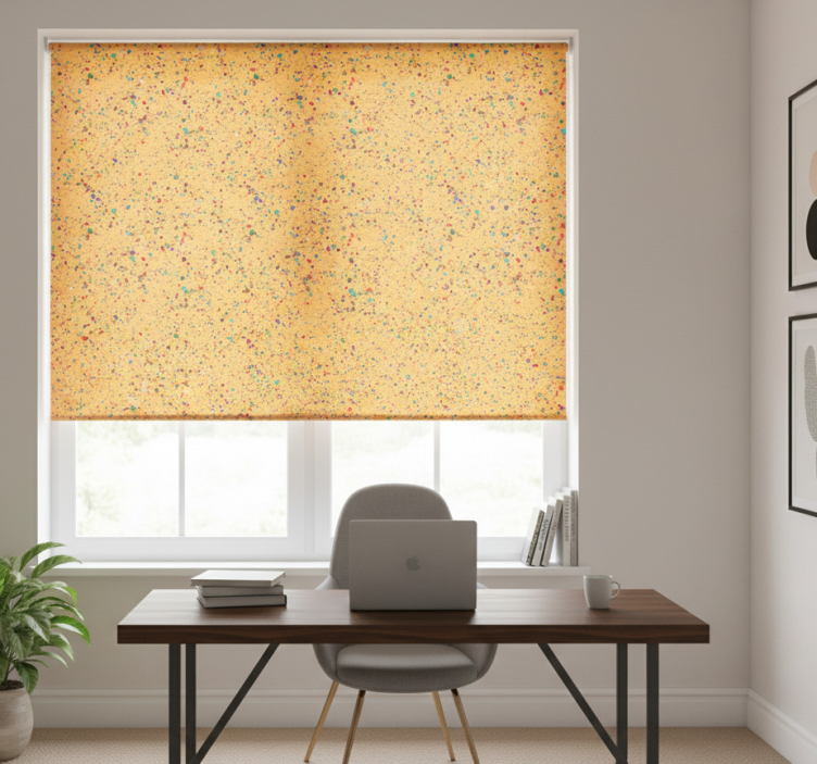 Roleta domácí kancelář malé barevné skvrny Roleta domácí kancelář je skvělou volbou pro ty, kteří chtějí spojit funkčnost s estetikou. Tento dekorativní výrobek dokáže zlepšit výzdobu místnosti a přitom zajišťuje regulaci pokojové teploty. Kromě toho poskytuje bezpečnost domu, protože umožňuje vidět ven, aniž byste byli viděni. Umožněte svému pracovnímu prostoru, aby dýchal s tímto stylovým a praktickým řešením!