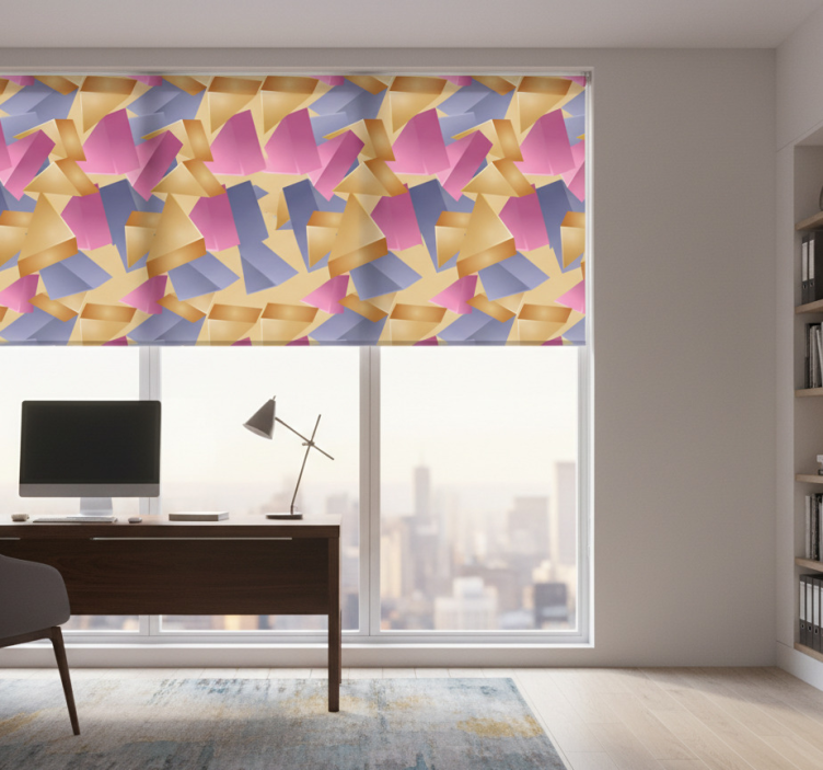 Roleta kancelář geometrická zlatá pyramida Roleta Kancelář je více než jen stínicí prvek; je to vyjádření vašeho vkusu a stylu. Tento výrobek přináší do vašeho pracovního prostoru nejen vizuální atraktivitu, ale také praktické výhody. Chcete-li ochránit svůj interiér před přímým slunečním zářením a zároveň si užít soukromí, tato roleta je tím pravým řešením. Navíc, její možnost regulace pokojové teploty zajišťuje komfort po celý den. S tímto dekorem budete mít dokonalé prostředí pro práci a kreativitu!