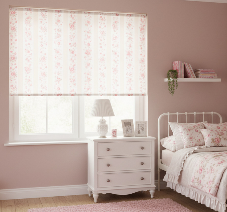 Růžová roleta s retro květinovými pruhy Růžová roleta není jen praktickým prvkem, ale také skvělým dekorativním doplňkem. Je ideální pro ty, kteří chtějí vytvořit útulnou atmosféru a zároveň si zachovat soukromí. Její design dodá každé místnosti osobitý šarm a styl. Nejenže chrání před přímým slunečním zářením, ale také umožňuje regulaci pokojové teploty a zlepšuje celkovou výzdobu. Čím víc se na ni podíváte, tím více se do ní zamilujete!