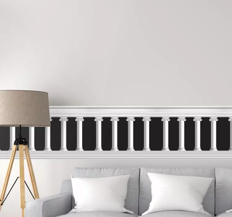 Hranice samolepka elegantní sloupcový vzor přináší do vašeho interiéru sofistikovaný dotek. Její design, inspirovaný římskou architekturou, vyzařuje eleganci a styl, s jemnými sloupci a okraji, které vytvářejí dokonalou harmonii mezi černou a bílou barvou. Tento produkt je ideální pro ty, kteří chtějí ozvláštnit svůj prostor a přidat mu nádech luxusu.
