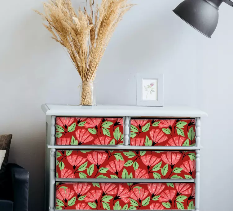 Objevte kouzlo našeho Nábytek nálepka květnový grafický potisk, který přináší do vašeho domova jedinečný design. Tento květinový vzor, plný ilustrací a zářivých barev, promění každou místnost v kousek přírody. Listy a květiny, které jsou součástí tohoto bytového designu, dodávají prostoru svěžest a harmonii. Nechte se unést krásou přírody přímo u vás doma!