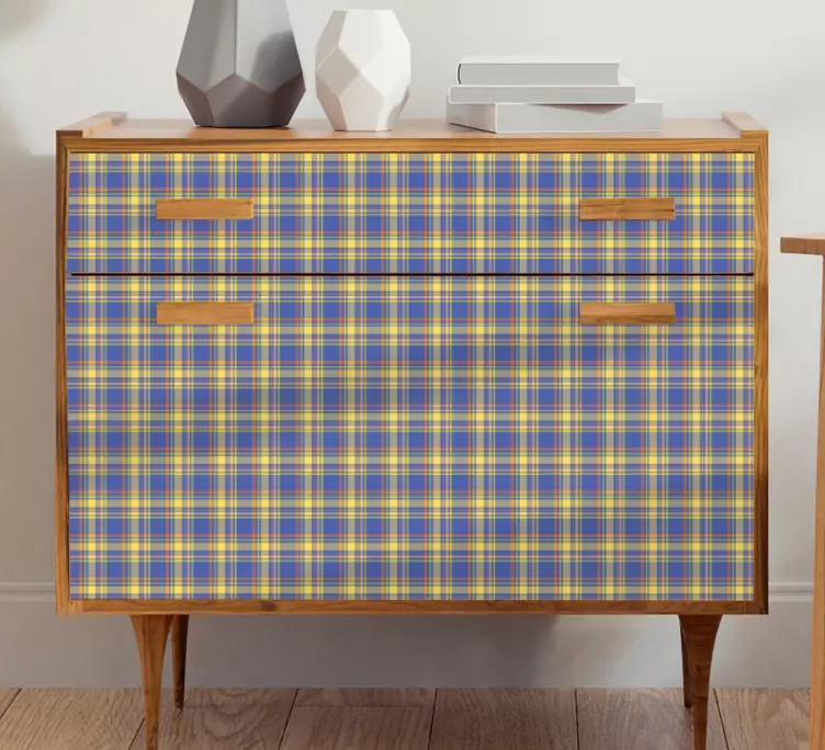 Reference: A49271Stylový kostkovaný vzor s kombinací modrých a žlutých odstínů. Tento design dodává nábytku moderní nádech a zvyšuje jeho vizuální přitažlivost klasickým, ale přesto moderním estetickým stylem.