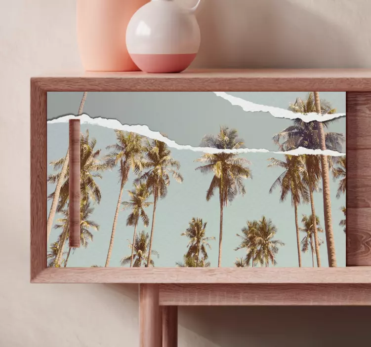Objevte kouzlo tropického ráje s naší Nábytek nálepka tropické palmy v pohledu. Tento jedinečný design zachycuje krásu přírody prostřednictvím realistických palem a dlaní, které se zdají, jako by se roztrhaly z papíru. S naším nábytkem přinesete do vašeho domova klidný atmosféru tropických pláží a přírody, což je ideální pro každého, kdo touží po útulném a relaxačním prostředí.