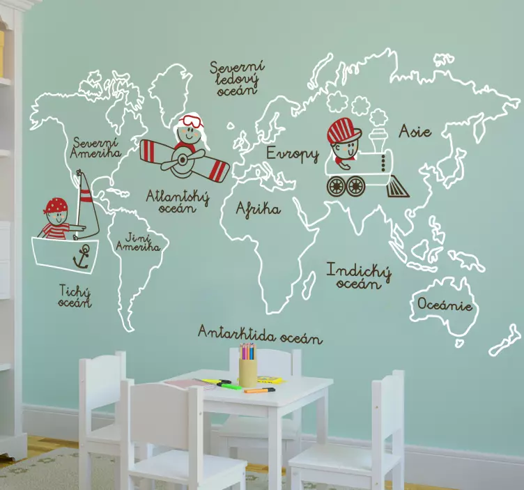 Tato samolepka na stěnu je ideální pro vaši dětskou ložnici nebo hernu a bude je bavit celé hodiny. Vyrábíme ji z ekologického materiálu, takže se nemusíte obávat škodlivých látek. S touto nálepkou se vaše dítě může cítit jako pravý dobrodruh a prozkoumat celý svět.