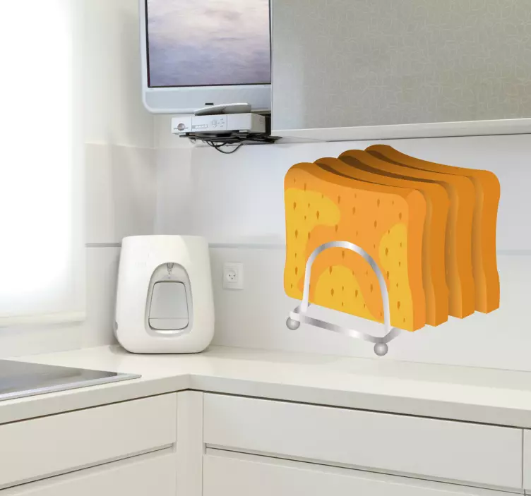 Tato samolepka na zeď je ideální pro zdobení vašeho domova nebo firmy, jako jsou kavárny, pekárny a restaurace. Vektorové ilustrace toustového stojanu naplněného čtyřmi plátky zlatého toastového chleba jsou vyrobeny z vysoce kvalitního vinylu, což zajišťuje snadné a rychlé nanášení a odstraňování. Samolepky na zeď jsou k dispozici v různých velikostech, takže si můžete vybrat tu pravou pro váš prostor. Navíc můžete zdobit nejen stěny, ale i okna, nábytek, vozidla, spotřebiče a další.