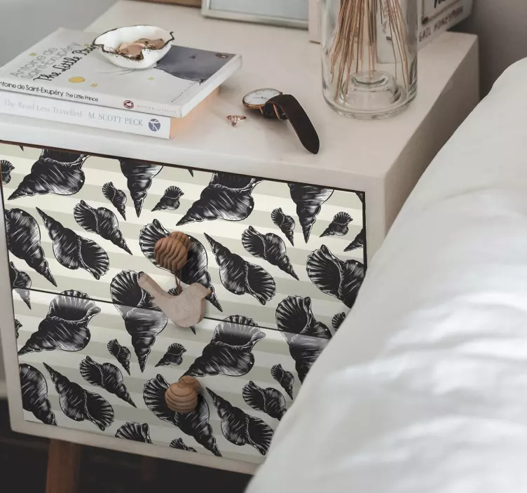 Mušle je univerzálním symbolem klidné a uklidňující atmosféry, tak proč si svůj nábytek ozdobit těmito obtisky pro nábytek a vnést tuto atmosféru do svého domova? Nezapomeňte se podívat na naši kolekci vinylových nálepek na nábytek, které jsou k dispozici v různých velikostech. Tyto nálepky jsou ideální pro ty, kteří milují moře a chtějí tuto lásku šířit každému návštěvníkovi svého domova! Navíc si můžete přizpůsobit velikost tak, aby dokonale zapadala do vaší formy.