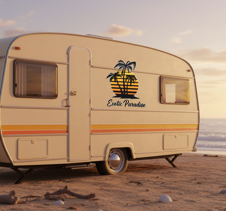 Když se rozhodnete pro samolepku karavanu exotický západ slunce, přidáte svému kempingovému autu osobitý styl a charakter. Tato samolepka karavanu je skvělým způsobem, jak vyjádřit svou vášeň pro cestování a přírodu. Vytvoříte tak příjemné a inspirativní prostředí, které vás bude motivovat k dalším dobrodružstvím! Nechte se unést nádhernými barvami a atmosférou, kterou tato samolepka přináší.