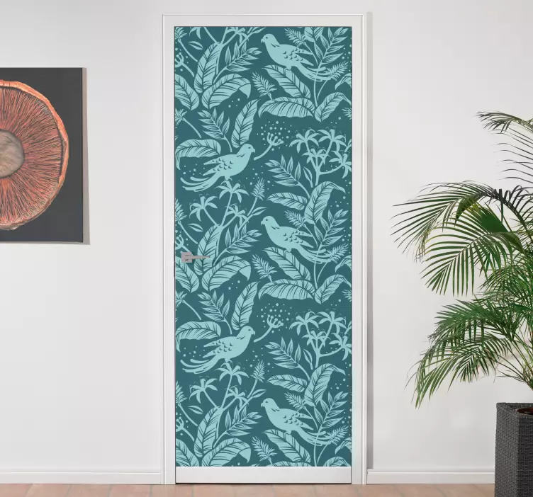 Samolepka na dveře s tropickým ptákem