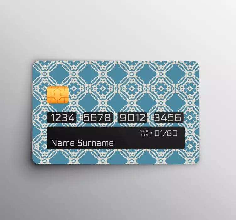 Objevte naši samolepku na kreditní kartu s vzorem, která přináší jedinečný styl a eleganci do vašeho každodenního života. Tento starožitný design v modré barvě a s ornamentálními a geometrickými prvky dodává vaší kreditní kartě osobitý vzhled. Textura samolepky zaručuje, že se stane nejen vizuálně atraktivní, ale také praktickou volbou pro vaše finance. Personalizovaná samolepka na kreditní kartu je ideálním způsobem, jak odlišit vaši kartu od ostatních.