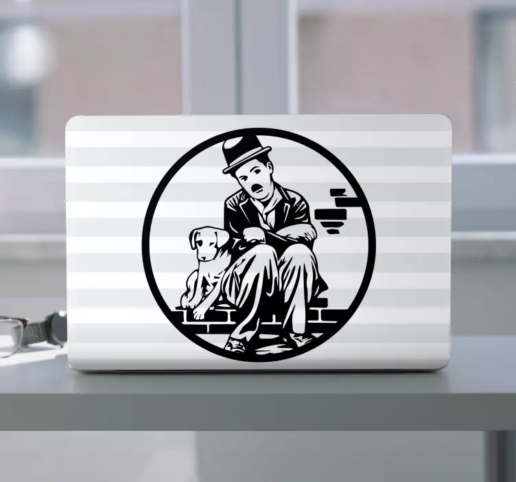 Reference: A33766Dekorativní potah na notebook Charlie Chaplin se psem