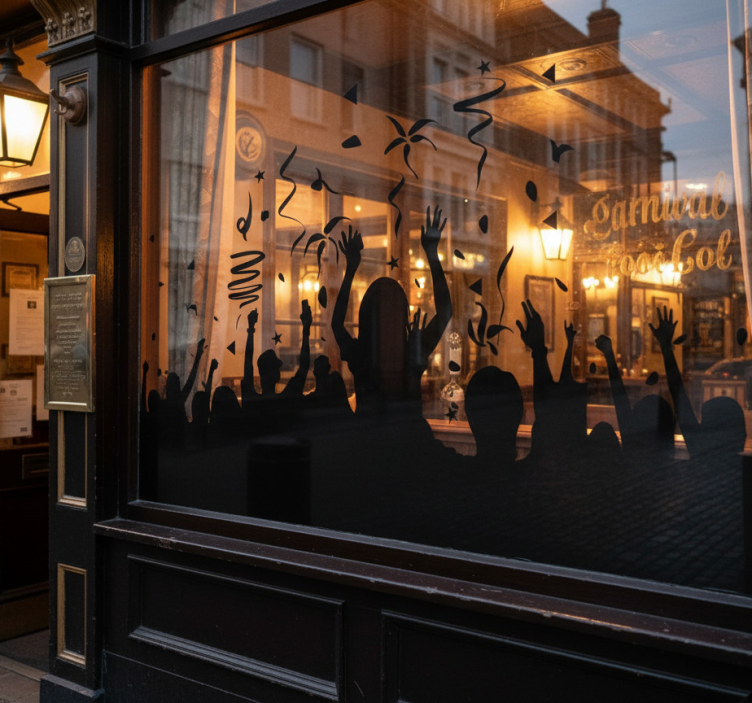 Samolepka na výlohy oslavující karnevalový dav samolepka na výlohy je skvělým způsobem, jak přetvořit jakýkoli prostor na zábavnou a barevnou atmosféru! Tato samolepka dokáže vtáhnout každého do oslav a přinést úsměv na tváře kolemjdoucích. Díky živým barvám a jedinečnému designu se stane středobodem pozornosti a zaručeně upoutá zraky všech! Použití této samolepky je inspirativním způsobem, jak vyjádřit radost a kreativitu, ať už ji umístíte na výlohu, do okna, nebo na jakýkoli jiný rovný povrch.