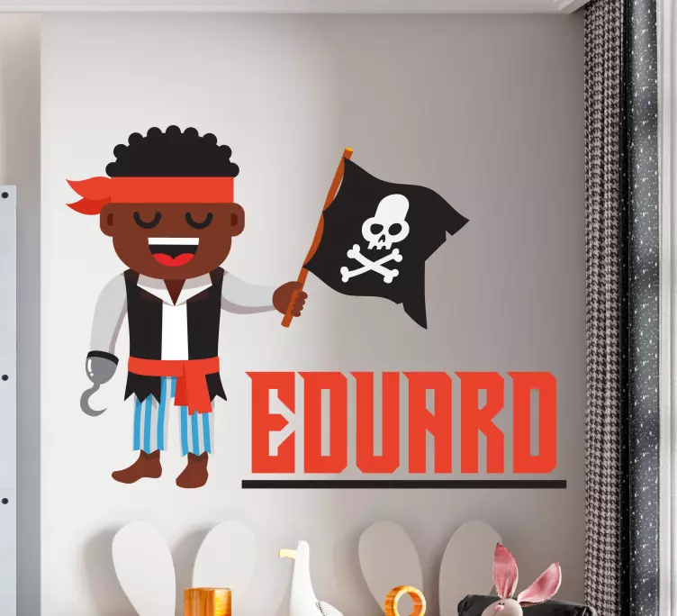 Reference: A48779Živý pirátský charakter držící vlajku s designem lebky vystihuje podstatu dobrodružství a zábavy. Tento přizpůsobitelný produkt umožňuje personalizaci, což z něj činí ideální volbu pro dětské prostory, podporující jejich představivost a kreativitu v jejich prostředí.