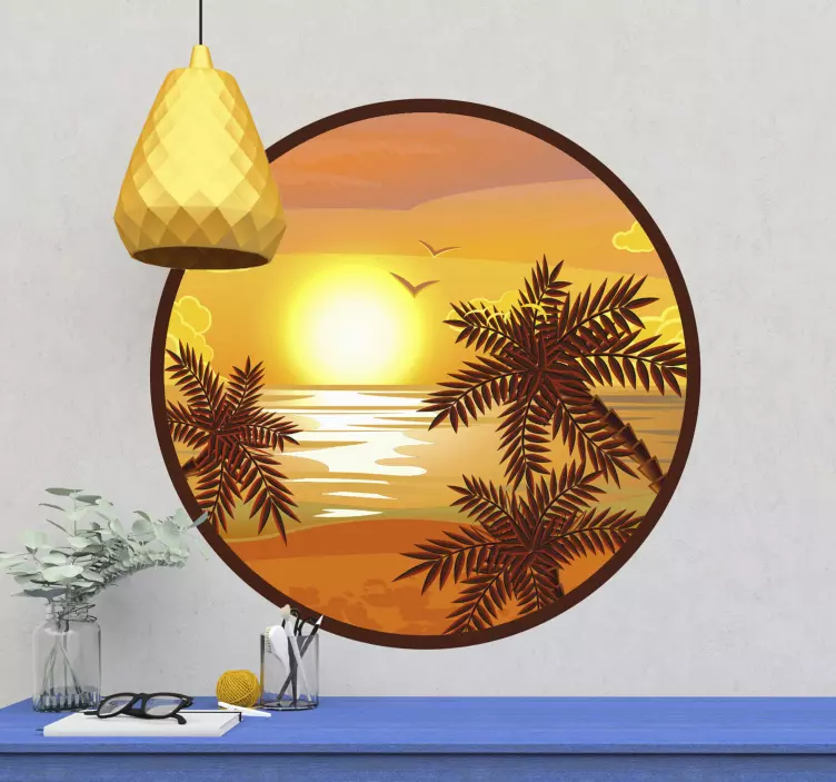 Objevte kouzlo přírody s naší samolepkou s přírodou klidný západ slunce, která přináší na váš prostor úchvatný design. Tento nádherný kousek zobrazuje tropický západ slunce, který osvěžuje vaše oči pohledem na oběžník, palmy a klidnou pláž. Všechny tyto prvky spojují přírodu a oceán do jednoho harmonického celku, který vám přinese pocit klidu a pohody.