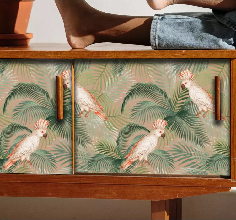 Objevte úchvatnou samolepku s přírodou tropické papoušky a palmy, která vnese do vašeho interiéru kousek tropického ráje! Tento jedinečný design kombinuje živé barvy papoušků, jemné peří a krásné dlaně s bohatým olistěním, které naplňuje prostor přírodní atmosférou. S touto samolepkou proměníte jakýkoliv kus nábytku na výjimečný prvek, který okouzlí každého návštěvníka. Ať už ji umístíte do obývacího pokoje, ložnice nebo kanceláře, vždy přidá do vašeho prostoru nádech přírody a elegance!