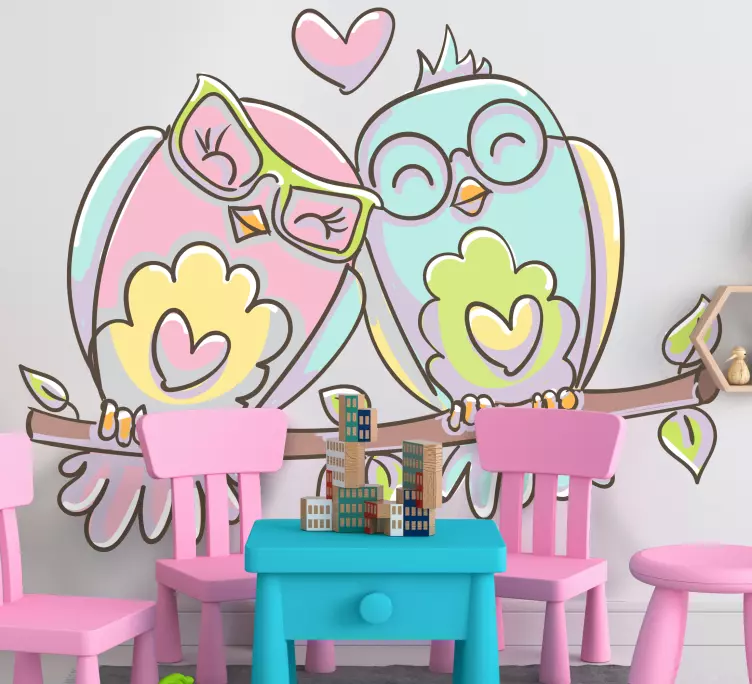 Samolepka s ptáčkem roztomilí milenci je jedinečný kousek, který přináší do vašeho domova nádech radosti a lásky. Tento krásný design zobrazuje roztomilou sovu jako symbol štěstí a lásky mezi párem. Ilustrace ptactva v růžové a modré barvě vytváří veselou atmosféru, která potěší každého, kdo na ni pohlédne. S tímto výrobkem si můžete ozdobit jakýkoli prostor a přenést do něj pocit harmonie a štěstí.