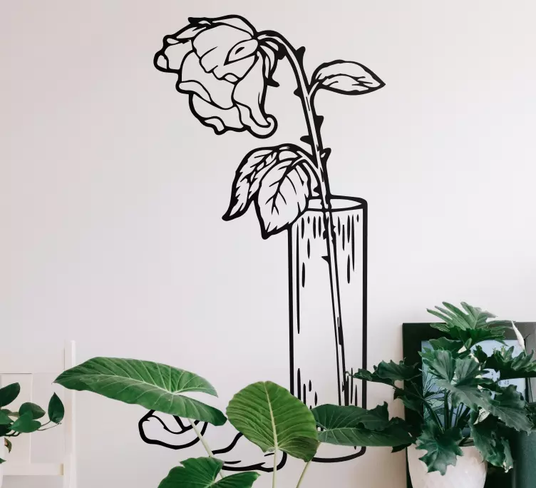 Tento výrobek je ideální pro vylepšení vzhledu vašeho interiéru. Samolepka na sušenou růži ve skleněné květině je jednoduchá a elegantní dekorace, kterou můžete umístit na zeď, dveře, okno a další místa. Aplikace je velmi snadná a rychlá.