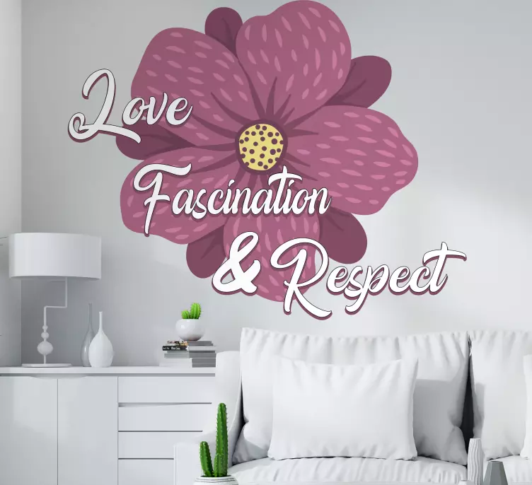 Reference: A48132Tento design obsahuje krásnou květinu spolu s upřímnou zprávou, která zdůrazňuje lásku, fascinaci a úctu. Tučné písmo a květinové prvky vytvářejí příjemnou atmosféru, což z něj činí ideální volbu pro vylepšení osobních prostor pozitivními afirmacemi.