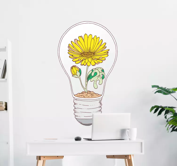 Design zvířecí nálepky kvetoucí žárovka je skutečným uměleckým dílem, které kombinuje prvky přírody s moderním stylem. Tato jedinečná ilustrace zachycuje krásu slunečnice a listů, které symbolizují růst a vitalitu. Žárovka, která je součástí designu, představuje světlo a inspiraci, zatímco žlutá barva dodává celému výrobku svěžest a energii. Tento produkt je ideálním způsobem, jak vnést přírodu do vašeho domova!