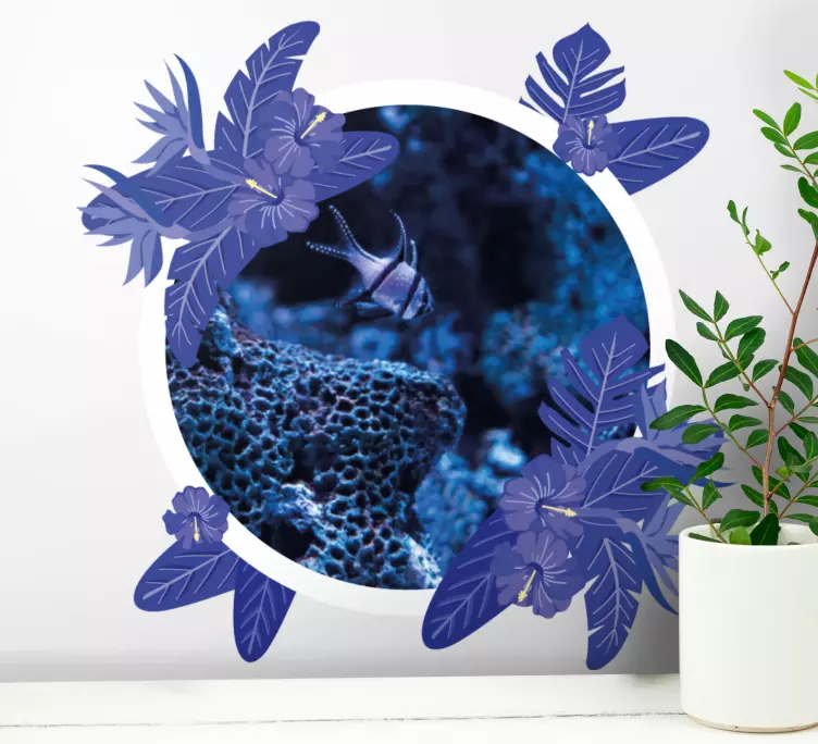 Objevte kouzlo podvodního světa s naší Zvířecí nálepkou podvodní průzkumnou scénou, která přenáší krásu přírody přímo do vašeho domova! Tento jedinečný design, zdobený květinami, tropickými rybami a korály, je ideální pro milovníky oceánu. Rámování s květinovým motivem a modrými odstíny evokuje svěžest a radost z přírody. Přidejte do svého prostoru kousek přírody s vlastní fotografií a užijte si atmosféru plnou listů a kola!