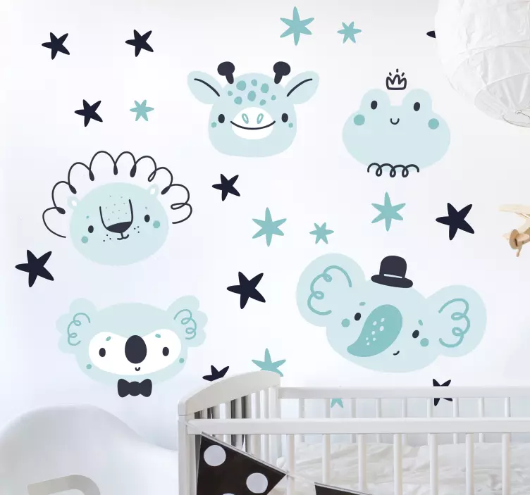 Objevte náš jedinečný design Zvířecí nálepka roztomilé zvířecí tváře, který přináší do vašeho domova hravé a barevné motivy severských zvířat! S roztomilými kreslenými tvářemi a hvězdnými motivy, tato nálepka je ideálním způsobem, jak přidat do dětského pokoje radost a kreativitu. Modré barvy a hravé vzory zaručují, že se stane oblíbeným prvkem každého dítěte, ať už na stěně, nábytku nebo jiných rovnýcích površích!