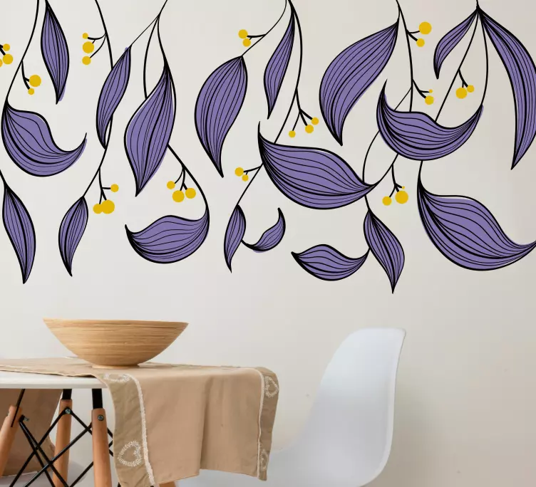 Reference: A48215Stylové fialové listy zdobené žlutými akcenty vytvářejí elegantní aranžmá. Složitá propletenost listů dodává svěží a živou atmosféru, což z něj činí ideální volbu pro vylepšení obytných prostor. Tento design přidává dotek přírody, aniž by přehlušil okolí.