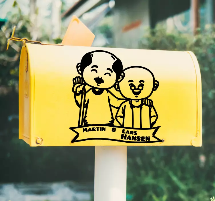 Naše Zvířecí nálepka veselá postavička dvojice je skvělým způsobem, jak přidat šmrnc a radost do vašeho domova! Tento graficky atraktivní design, který zahrnuje poštovní schránku a přizpůsobitelné prvky, přináší do vašeho prostoru přátelskou atmosféru. Postavičky mužů s úsměvy a náladovými znaky zaručují, že každý, kdo se na ně podívá, se usměje a pocítí lásku k tomuto jedinečnému kousku. Je to ideální volba pro ty, kteří chtějí oživit své interiéry nebo exteriéry a přidat do nich kousek radosti!