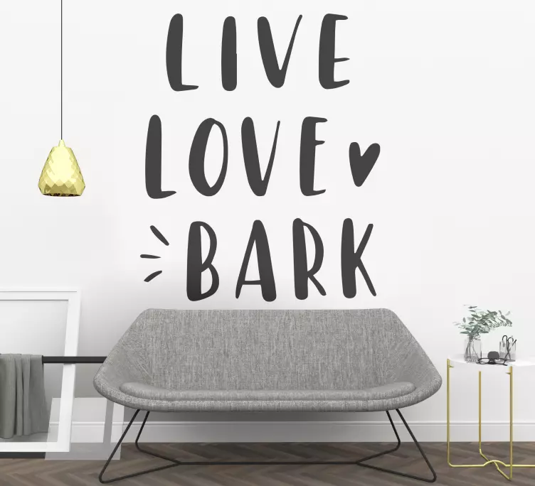 Naše zvířecí nálepka Žij miluj Štěkej přináší do vašeho domova jedinečný a inspirativní design. S motivem žít, milovat, kůra a textem zaměřeným na psy a domácí mazlíčky, tato dekorace dodává nejen zábavu, ale i útulnost. Je ideálním způsobem, jak vyjádřit svou lásku k mazlíčkům a vytvořit příjemnou atmosféru ve vašem domově.